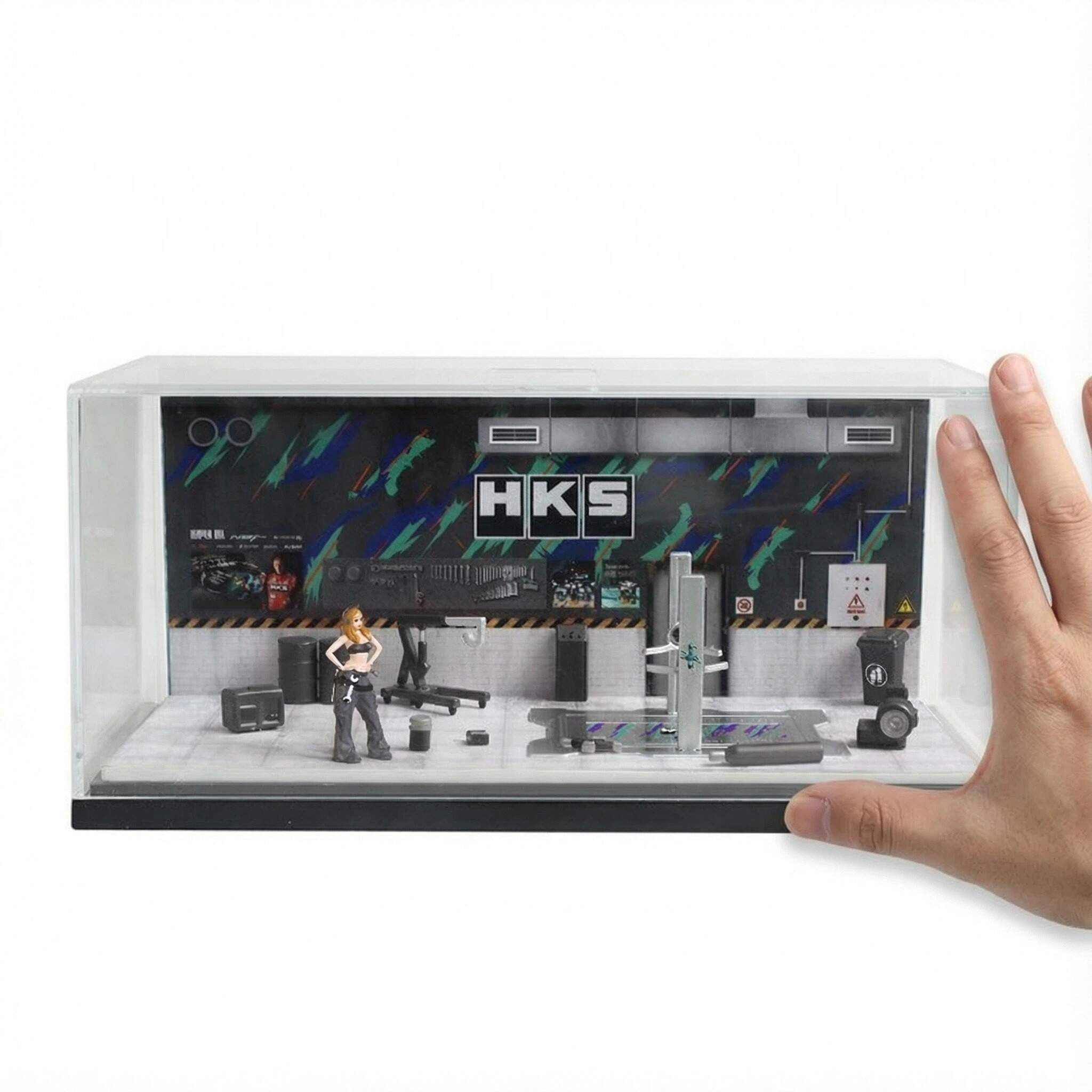 Create a high-performance atmosphere for your diecast collection with this 1:64 scale performance tuning garage diorama display case. Inspired by professional motorsport workshops and JDM-style tuning garages, this scene delivers a realistic, detailed, and immersive environment for showcasing your favorite cars.