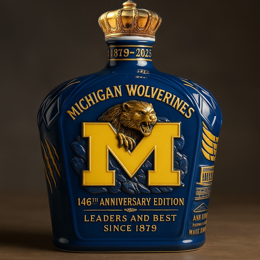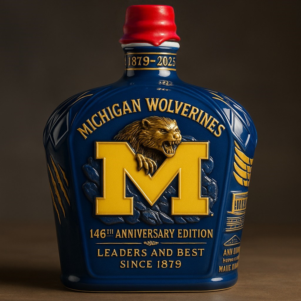 💙💛🥃 Use this Michigan Wolverines 146th Anniversary Whiskey Bottle (1879–2025) to honor nearly a century and a half of excellence, tradition, and blue-and-maize pride.
